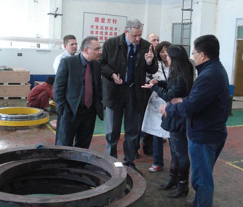 ,2009年3月14日意大利客戶來公司考察,洽談轉盤軸承項目。,回轉驅動,轉盤軸承,串列軸承,交叉滾子軸承,非標軸承,sbi,滿裝軸承,洛陽世必愛特種