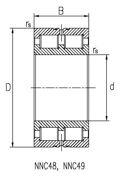 | INA 型號 | 外形尺寸(mm) | 基本負荷(KN) | 極限轉(zhuǎn)速(r/min) | 重量(KG) | | d | D | B | rsmin | 動 | 靜 |
