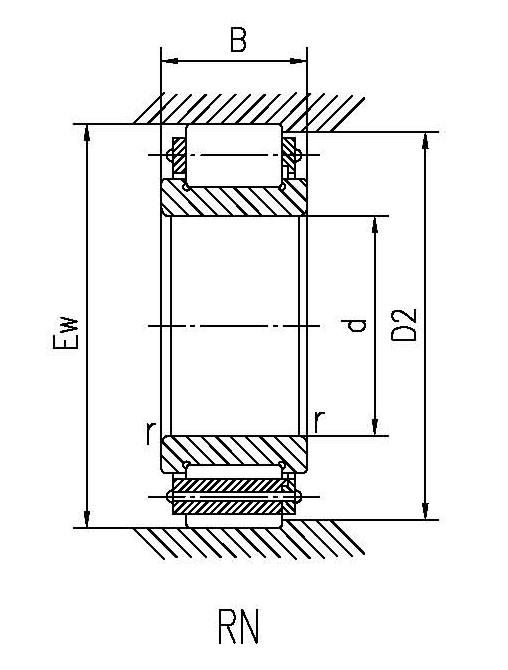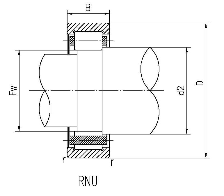 | 外形尺寸(mm) | 基本負荷(KN) | 極限轉速(r/min) | 重量(KG) | | d | D | B | Rsmin | Fw(Ew) | d2(D2) | 動 | 靜 | 脂潤滑 | 油潤滑 |