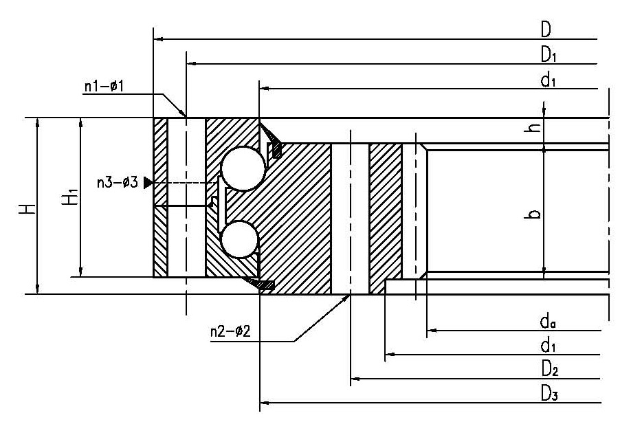 | LYC 型號 | TG 型號 | 外形尺寸(mm) | 安裝尺寸(mm) | 結構尺寸(mm) | 齒參數(shù)(mm) | 額定軸向靜負荷(KN) | 重量(KG) | | Da | D | di | H | La | Li | n1 | n2 | φ1 | φ2 | D1 | d | b | h | B | C | Di | da | m | z | do | x |