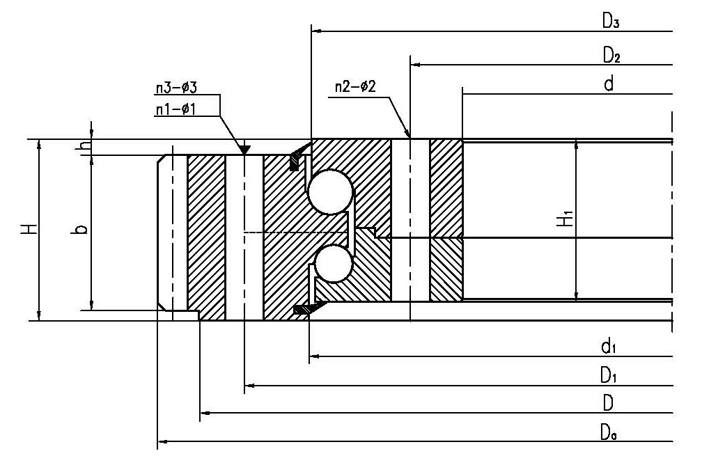 | LYC 型號 | TG 型號 | 外形尺寸(mm) | 安裝尺寸(mm) | 結構尺寸(mm) | 齒參數(shù)(mm) | 額定軸向靜負荷(KN) | 重量(KG) | | Da | D | di | H | La | Li | n1 | n2 | φ1 | φ2 | D1 | d | b | h | B | C | Di | da | m | z | do | x |